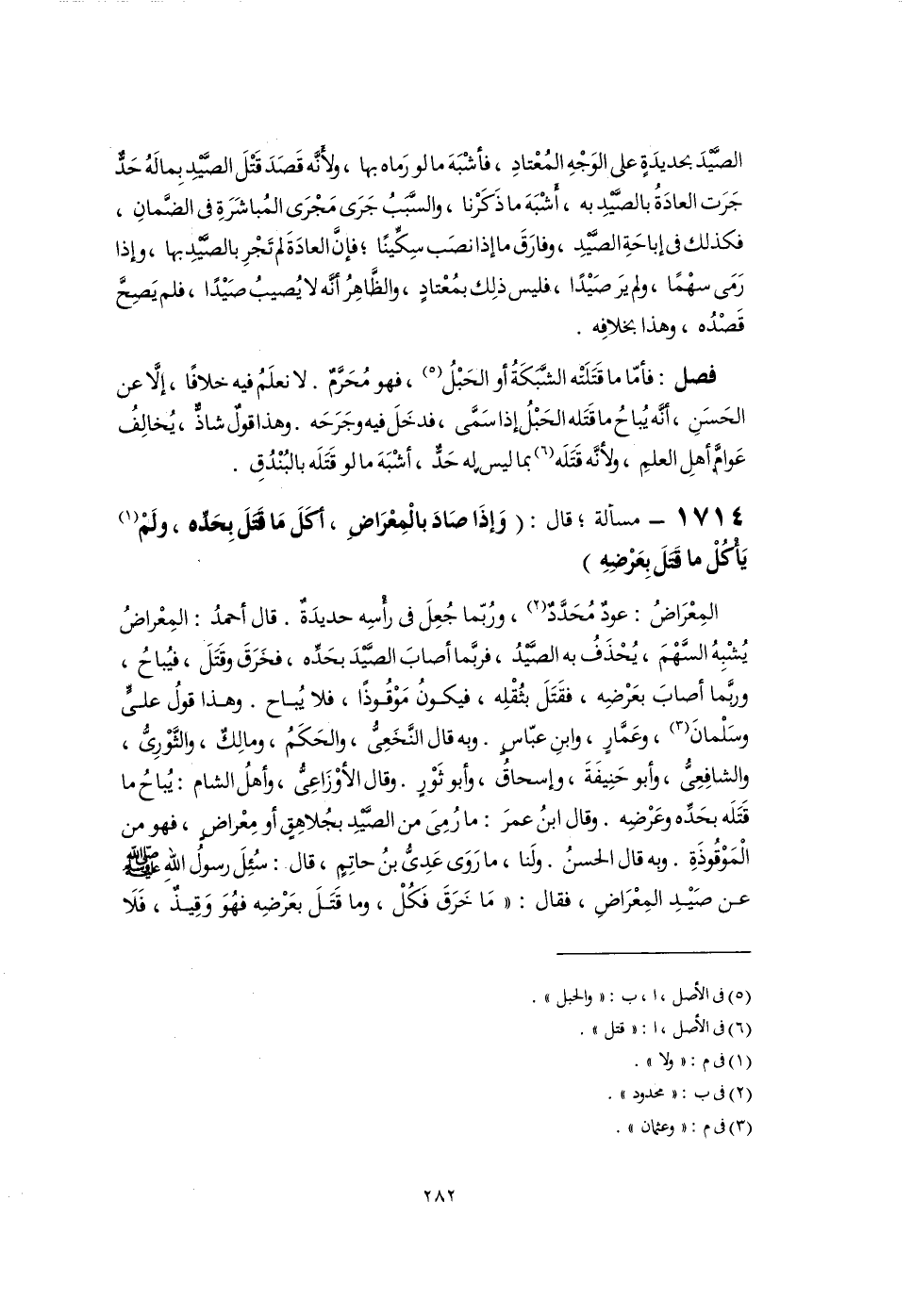 ١٧١٤ - مسألة؛ قال: (وَإِذَا صَادَ بالْمِعْرَاضِ، أَكَلَ مَا قَتَلَ بِحَدِّه، ولَمْ (١) يَأْكُلْ ما قَتَلَ بِعَرْضِهِ)