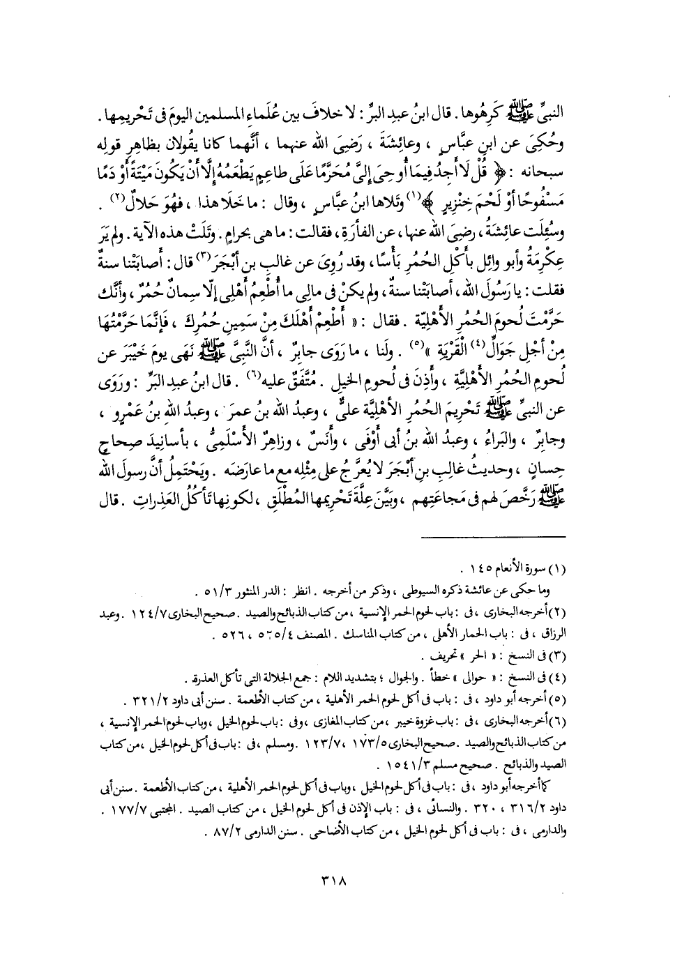 (٦) أخرجه البخارى، فى: باب غزوة خيبر، من كتاب المغازى، وفى: باب لحوم الخيل، وباب لحوم الحمر الإنسية، من كتاب الذبائح والصيد. صحيح البخارى ٥/ ١٧٣، ٧/ ١٢٣. ومسلم، فى: باب فى أكل لحوم الخيل، من كتاب الصيد والذبائح. صحيح مسلم ٣/ ١٥٤١.