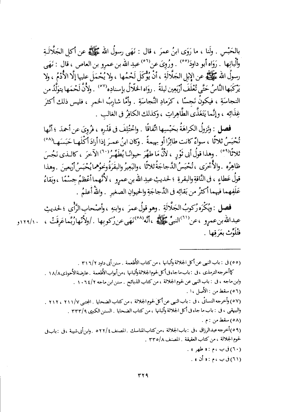 (٥٩) أخرجه عبد الرزاق، فى: باب الجلالة، من كتاب المناسك. المصنف ٤/ ٥٢٢. وابن أبى شيبة، فى: باب فى لحوم الجلالة، من كتاب العقيقة. المصنف ٨/ ٣٣٥.
