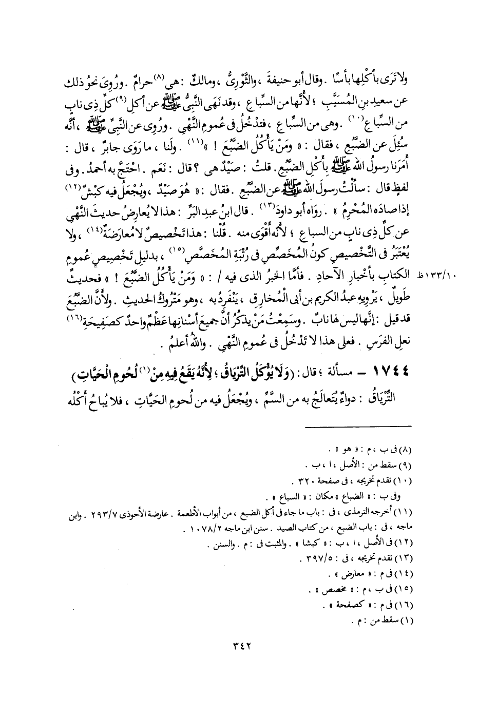 (١١) أخرجه الترمذى، فى: باب ما جاء فى أكل الضبع، من أبواب الأطعمة. عارضة الأحوذى ٧/ ٢٩٣. وابن ماجه، فى: باب الضبع، من كتاب الصيد. سنن ابن ماجه ٢/ ١٠٧٨.