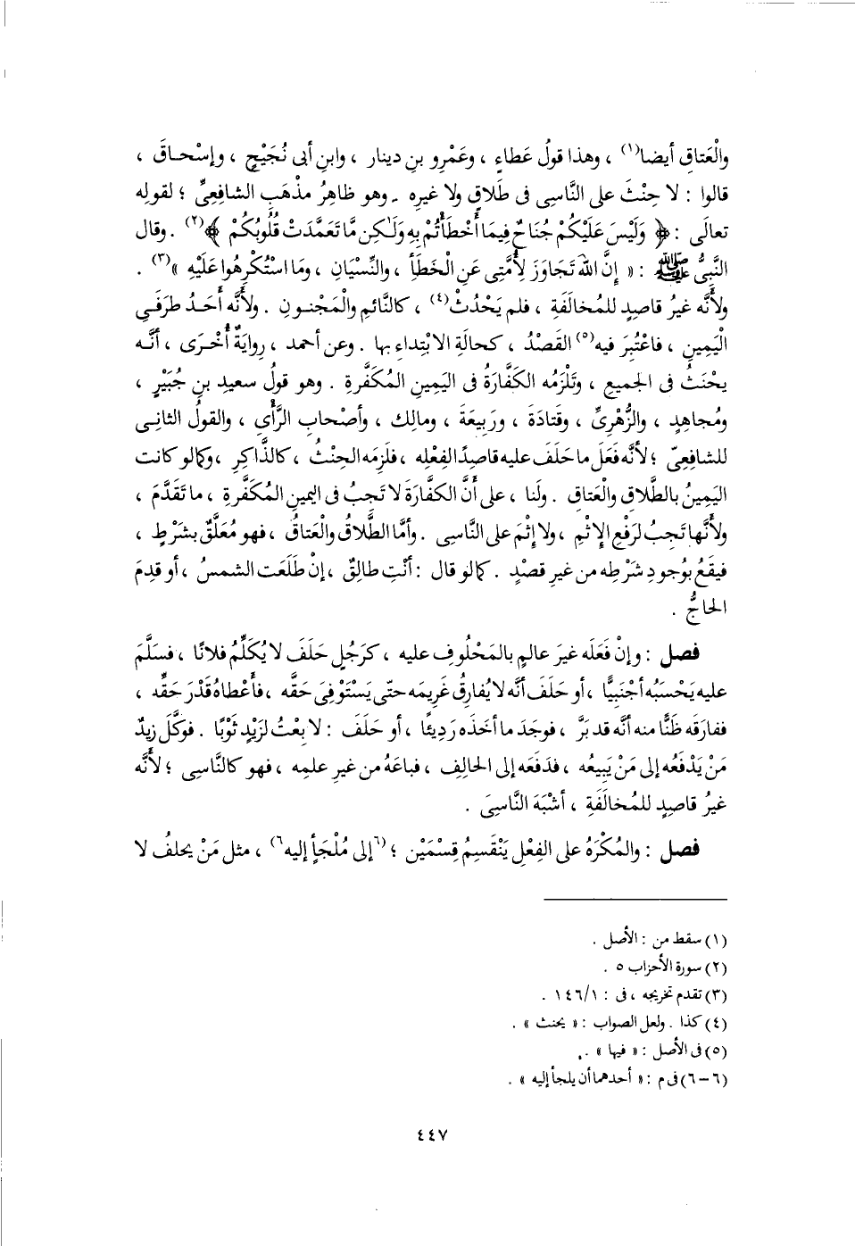 (٤) كذا. ولعل الصواب: "يحنث".
