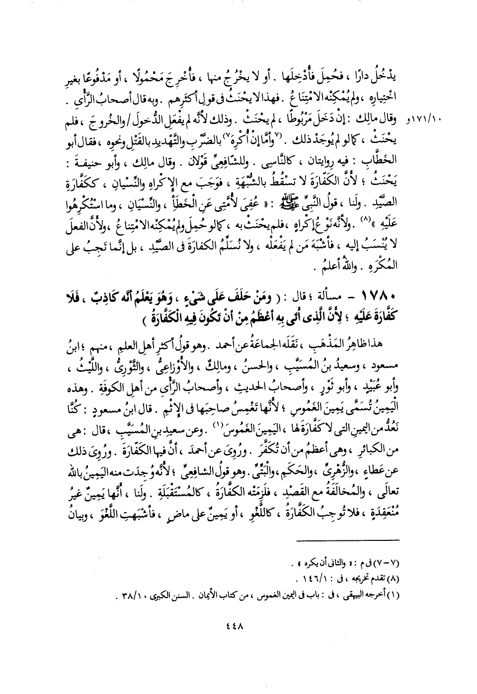 (١) أخرجه البيهقى، فى: باب فى اليمين الغموس، من كتاب الأيمان. السنن الكبرى ١٠/ ٣٨.