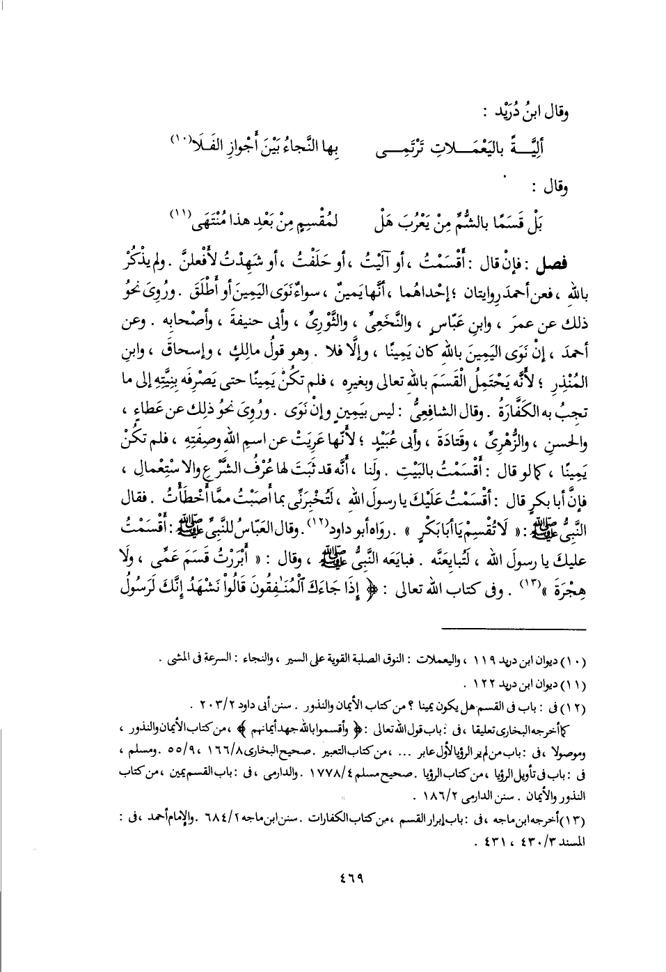 (١٢) فى: باب فى القسم هل يكون يمينا؟ من كتاب الأيمان والنذور. سنن أبى داود ٢/ ٢٠٣.