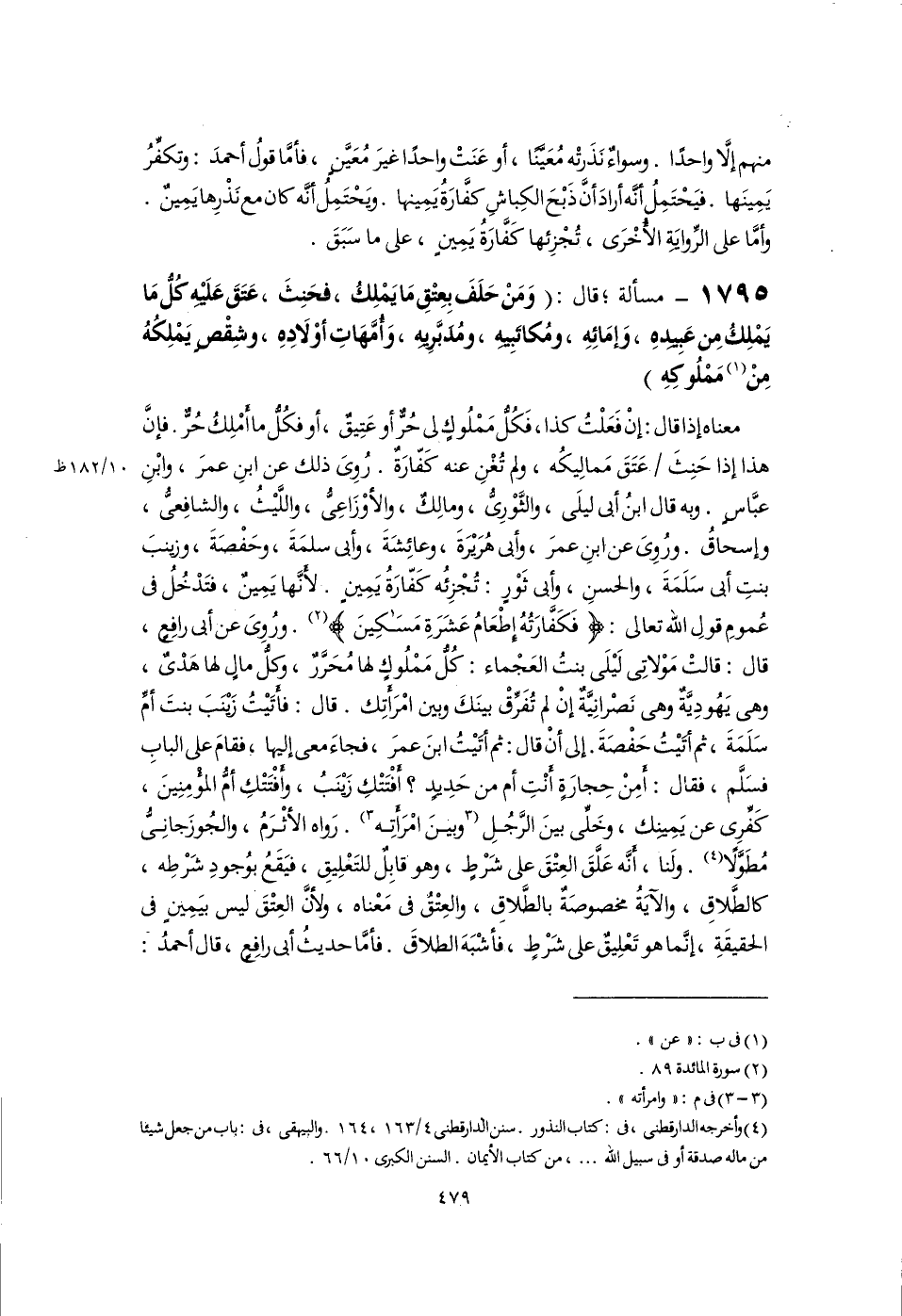 (٤) وأخرجه الدارقطنى، فى: كتاب النذور. سنن الدارقطنى ٤/ ١٦٣، ١٦٤. والبيهقى، فى: باب من جعل شيئًا من ماله صدقة أو فى سبيل اللَّه. . .، من كتاب الأيمان. السنن الكبرى ١٠/ ٦٦.