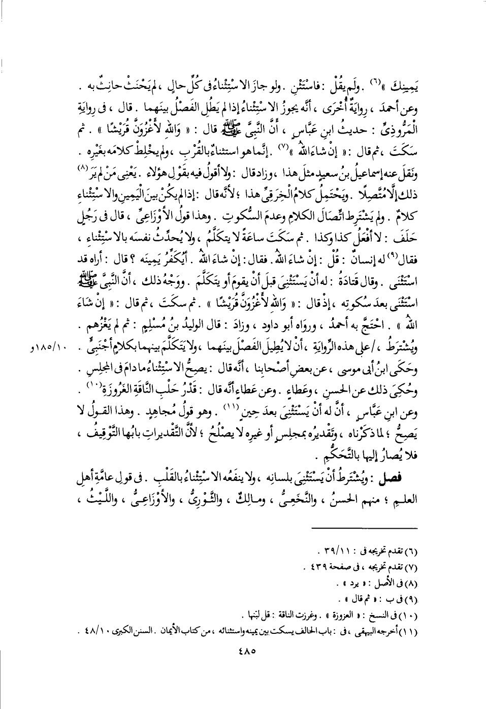 (١١) أخرجه البيهقى، فى: باب الحالف يسكت بين يمينه واستثنائه، من كتاب الأيمان. السنن الكبرى ١٠/ ٤٨.