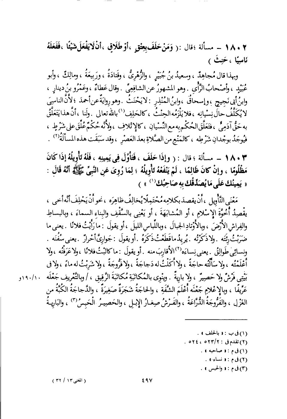 ١٨٠٣ - مسألة؛ قال: (وَإِذَا حَلَفَ، فَتَأَوَّلَ فِى يَمينِهِ، فَلَهُ تَأْوِيلُهُ إِذَا كَانَ مَظْلُومًا، وإِنْ كانَ ظَالِمًا، لَمْ يَنْفَعْهُ تَأْوِيلُهُ، لِمَا رُوِىَ عَنِ النَّبِىِّ -صلى اللَّه عليه وسلم- أَنَّهُ قَالَ: "يَمينُك عَلَى مَا يُصَدِّقُك بِهِ صَاحِبُكَ (١) ")
