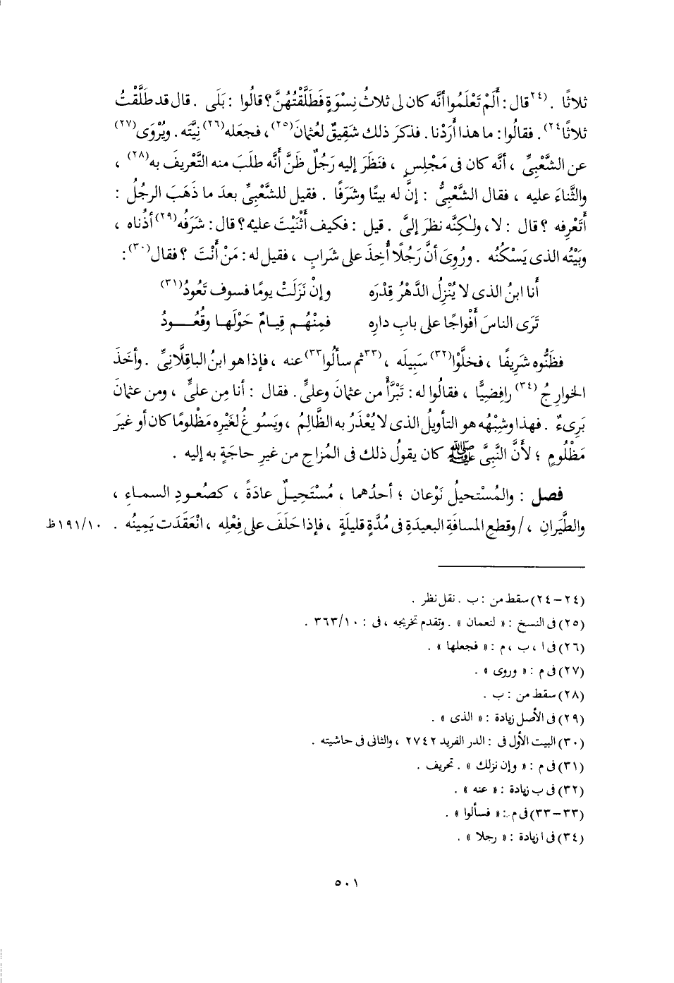 فظَنُّوه شَرِيفًا، فخلَّوْا (٣٢) سَبِيلَه، [ثم سألُوا] (٣٣) عنه، فإذا هو ابنُ الباقِلَّانِىِّ. وأخَذَ الخوارِجُ (٣٤) رافضِيًّا، فقالُوا له: تَبْرَّأْ من عثمانَ وعلىٍّ. فقال: أنا مِن علىٍّ، ومن عثمانَ بَرِىءٌ. فهذا وشِبْهُه هو التأويلُ الذى لا يُعْذَرُ به الظَّالِمُ، ويَسُوغُ لغَيْرِه مَظْلومًا كان أو غيرَ مَظْلُوِمٍ؛ لأنَّ النَّبِىَّ -صلى اللَّه عليه وسلم- كان يقولُ ذلك فى المُزاحِ من غيرِ حاجَةٍ به إليه.