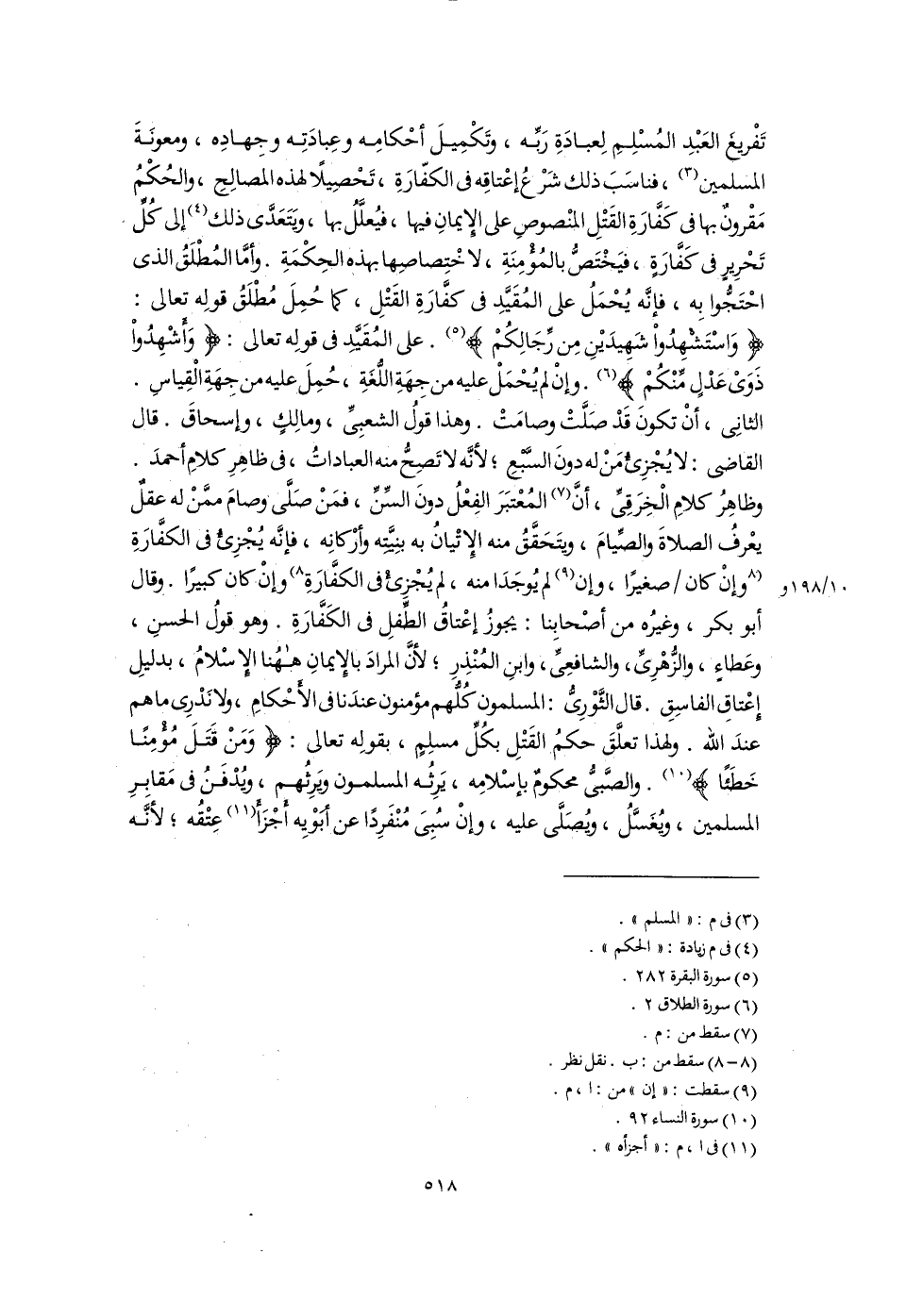 (١٠) سورة النساء ٩٢.