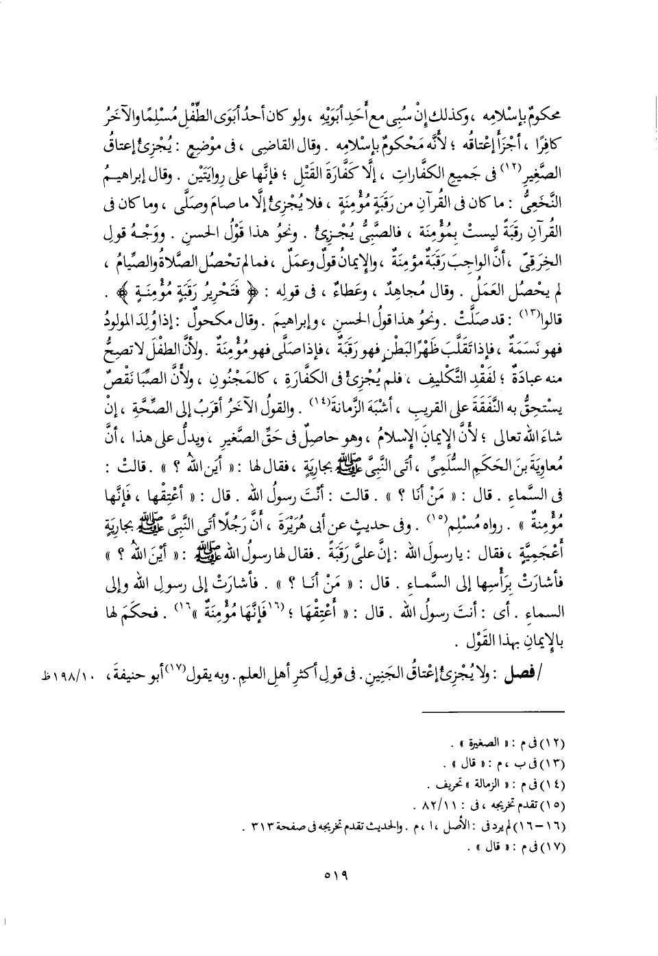 فصل: ولا يُجْزِئُ إعْتاقُ الجَنِينِ. فى قولِ أكثرِ أهلِ العلمِ. وبه يقول (١٧) أبو حنيفةَ،