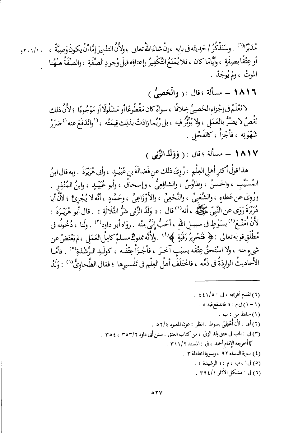 (٣) فى: باب فى عتق ولد الزنى، من كتاب العتق. سنن أبى داود ٢/ ٣٥٣، ٣٥٤.