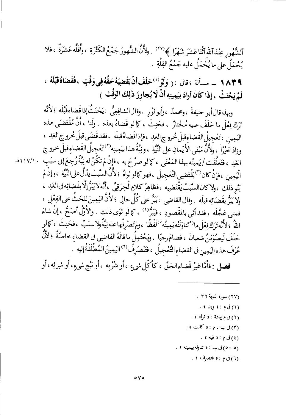 الشُّهُورِ عِنْدَ اللَّهِ اثْنَا عَشَرَ شَهْرًا} (٢٧). ولأَنَّ الشُّهورَ جَمْعُ الكَثْرَةِ، وأَقَلُّه عَشَرَةٌ، فلا يُحْمَلُ على ما يُحْمَلُ عليه جَمْعُ القِلَّةِ.