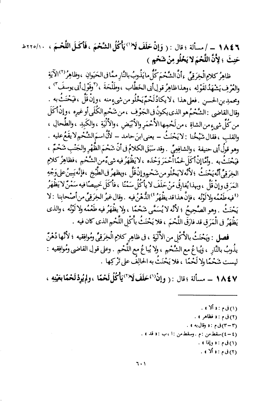 ١٨٤٦ - مسألة؛ قال: (وَإِنْ حَلَفَ لَا (١) يَأْكُلُ الشَّحْمَ، فَأكَلَ اللَّحْمَ، حَنِثَ؛ لِأَنَّ اللَّحْمَ لا يَخْلُو مِنْ شَحْمٍ)