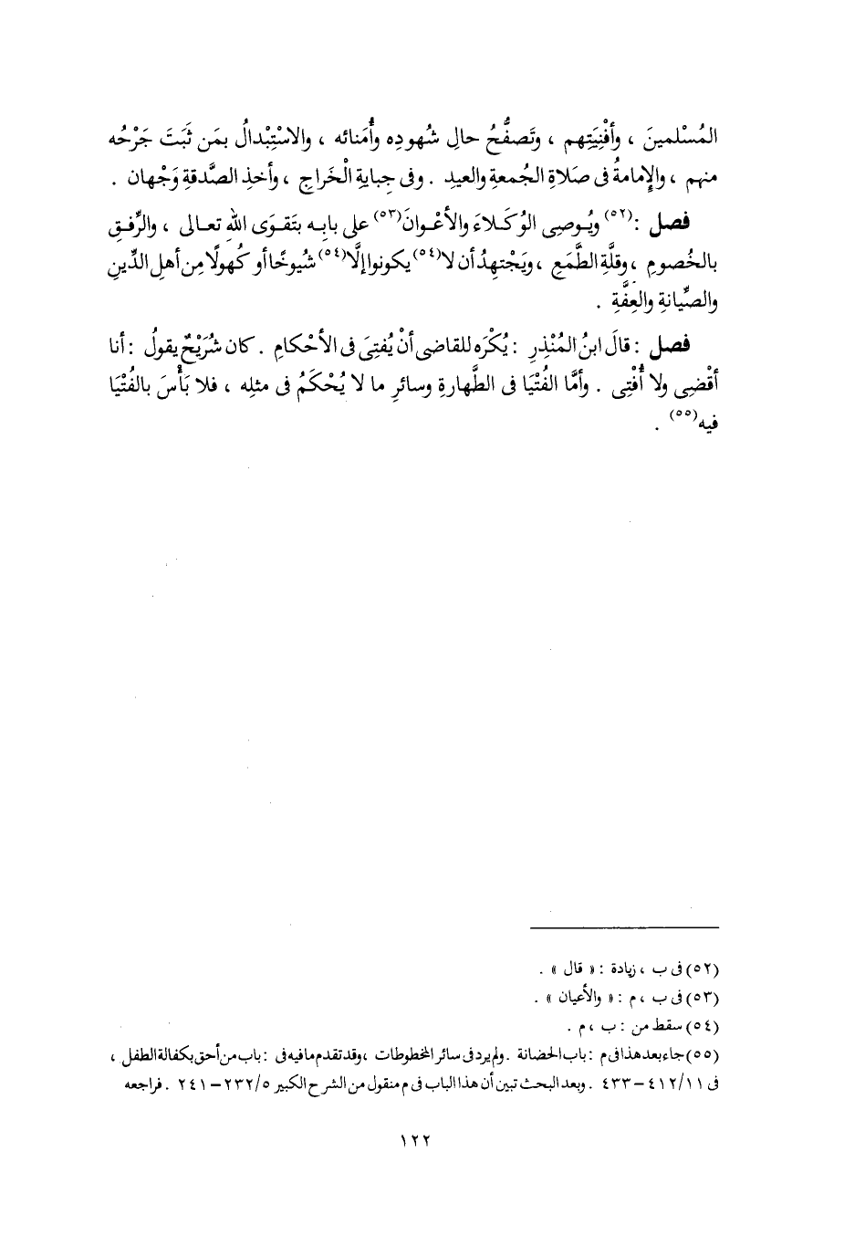 (٥٥) جاء بعد هذا فى م: باب الحضانة. ولم يرد فى سائر المخطوطات، وقد تقدم ما فيه فى: باب من أحق بكفالة الطفل، فى ١١/ ٤١٢ - ٤٣٣. وبعد البحث تبين أن هذا الباب فى م منقول من الشرح الكبير ٥/ ٢٣٢ - ٢٤١. فراجعه.