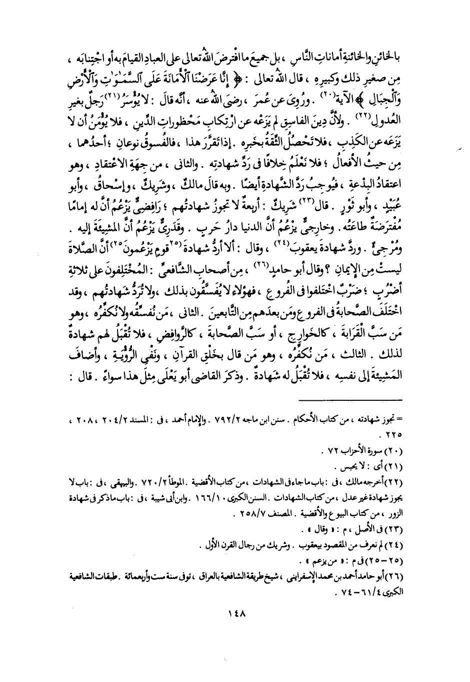= تجوز شهادته، من كتاب الأحكام. سنن ابن ماجه ٢/ ٧٩٢. والإمام أحمد، فى، المسند ٢/ ٢٠٤، ٢٠٨، ٢٢٥.