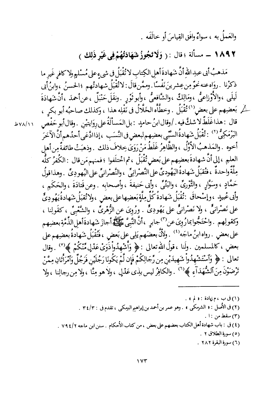(٤) فى: باب شهادة أهل الكتاب بعضهم على بعض، من كتاب الأحكام. سنن ابن ماجه ٢/ ٧٩٤.