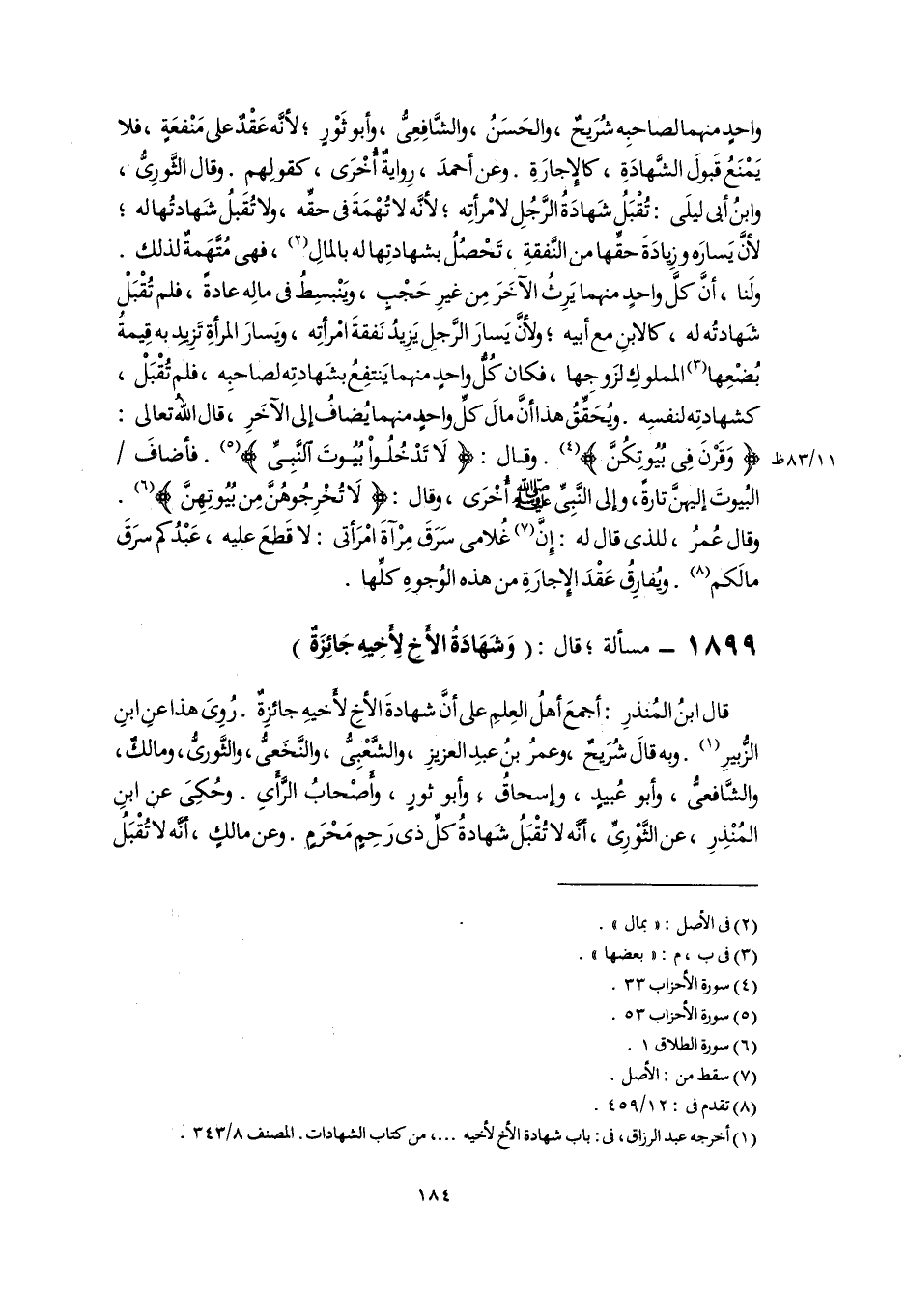١٨٩٩ - مسألة؛ قال: (وَشَهادَةُ الأَخِ لِأَخِيهِ جَائِزَةٌ)