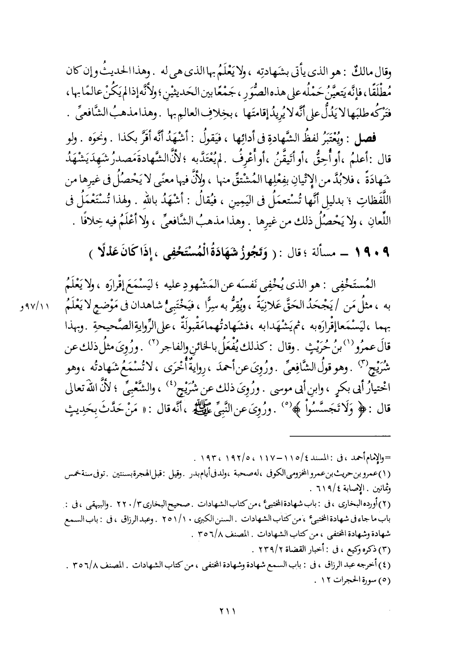 (٢) أورده البخارى، فى: باب شهادة المختبئ، من كتاب الشهادات. صحيح البخارى ٣/ ٢٢٠. والبيهقى، فى: باب ما جاء فى شهادة المختبئ، من كتاب الشهادات. السنن الكبرى ١٠/ ٢٥١. وعبد الرزاق، فى: باب السمع شهادة وشهادة المختفى، من كتاب الشهادات. المصنف ٨/ ٣٥٦.