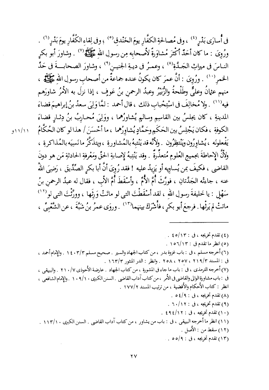 (١١) انظر ما أخرجه البيهقى، في: باب من يشاور، من كتاب آداب القاضي. السنن الكبرى، ١٠/ ١١٣.
