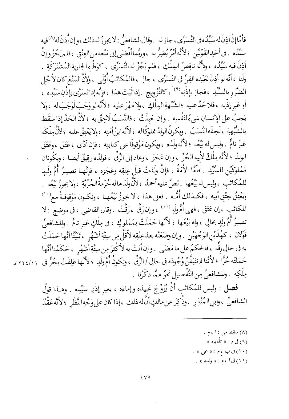 فصل: وليس للمُكاتَبِ أَنْ يُزَوِّجَ عَبِيدَه وإماءَه، بغيرِ إذْنِ سَيِّدِه. وهذا قولُ الشافعىِّ، وابنِ المُنْذِرِ. وذُكِرَ عن مالكٍ أَنَّ له ذلك، إذا كان على وَجْهِ النَّظَرِ؛ لأَنَّه عَقْدٌ