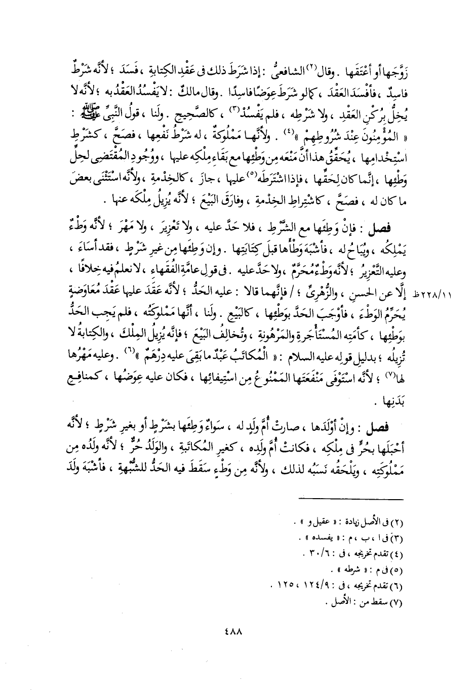 زَوَّجَها أو أعْتَقَها. وقال (٢) الشافعىُّ: إذا شَرَطَ ذلك فى عَقْدِ الكِتابةِ، فَسَدَ؛ لأَنَّه شَرْطٌ فاسِدٌ، فأفْسَدَ العَقْدَ، كما لو شَرَطَ عِوَضًا فاسِدًا. وقال مالكٌ: لا يَفْسُدُ العَقْدُ به؛ لأَنَّه لا يُخِلُّ بِرُكْنِ العَقْدِ، ولا شَرْطِه، فلم يَفْسُدْ (٣)، كالصَّحِيحِ. ولَنا، قولُ النَّبِىِّ -صلى اللَّه عليه وسلم-: "المُؤْمِنُونَ عِنْدَ شُرُوطِهِمْ" (٤). ولأنَّها مَمْلُوكةٌ، له شَرْطُ نَفْعِها، فصَحَّ، كشَرْطِ اسْتِخْدامِها، يُحَقِّقُ هذا أَنَّ مَنْعَه مِن وَطْئِها مع بَقَاءِ مِلْكِه عليها، ووُجُودِ المُقْتَضِى لحِلِّ وَطْئِها، إنَّما كان لِحَقِّها، فإذا اشْتَرَطَه (٥) عليها، جازَ، كالخِدْمةِ، ولأنَّه اسْتَثْنَى بعضَ ما كان له، فصَحَّ، كاشْتِراطِ الخِدْمةِ، وفارَقَ البَيْعَ؛ لأَنَّه يُزِيلُ مِلْكَه عنها.