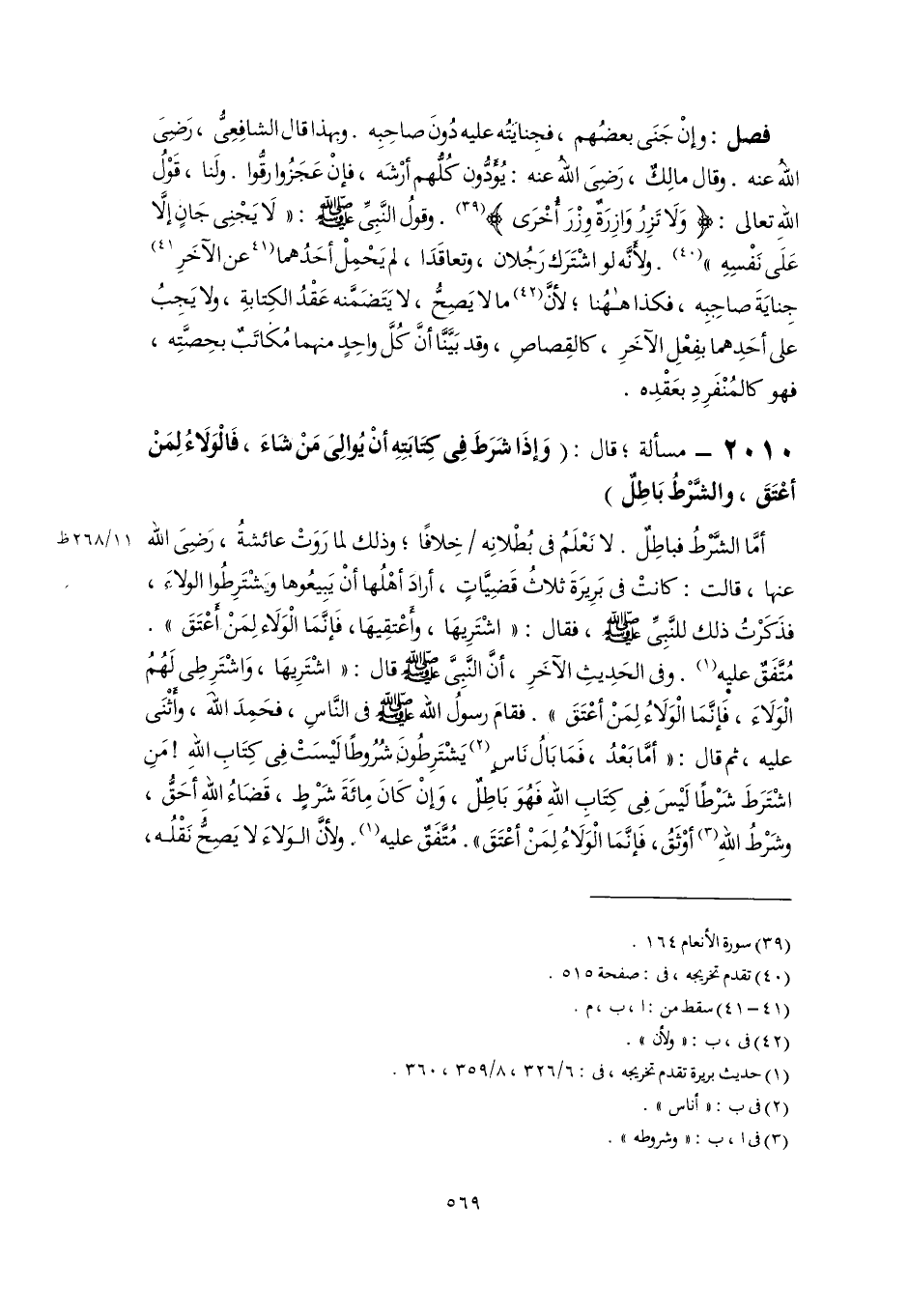 (١) حديث بريرة تقدم تخريجه، فى: ٦/ ٣٢٦، ٨/ ٣٥٩، ٣٦٠.