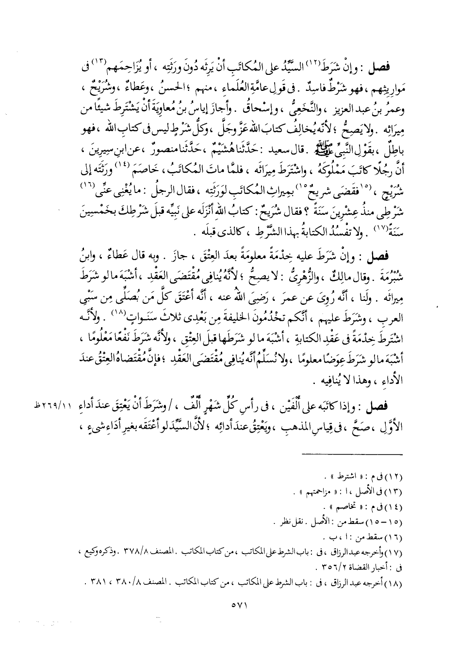 (١٨) أخرجه عبد الرزاق، فى: باب الشرط على المكاتب، من كتاب المكاتب. المصنف ٨/ ٣٨٠، ٣٨١.