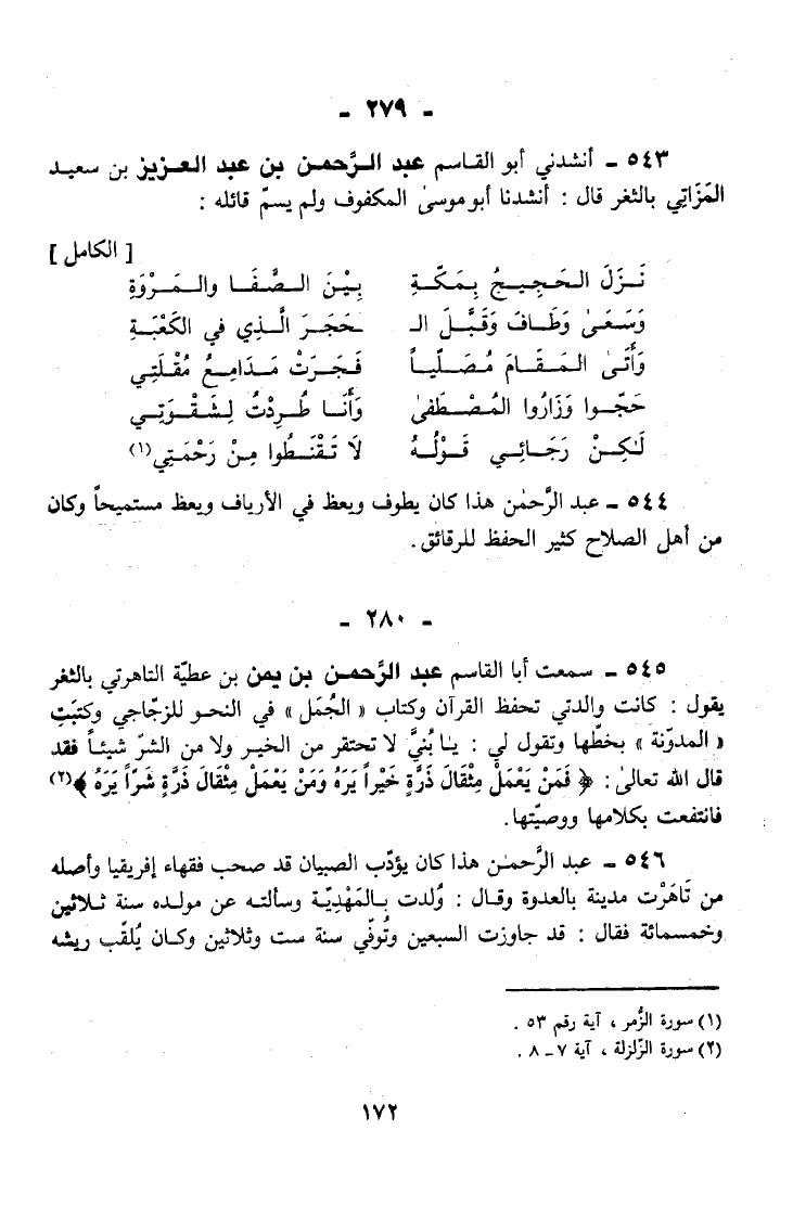 544 - عَبْدُ الرَّحْمَنِ هَذَا كَانَ يَطُوفُ وَيَعِظُ فِي الْأَرْيَافِ وَيَعِظُ مُسْتَمِيحًا وَكَانَ مِنْ أَهْلِ الصَّلَاحِ كَثِيرَ الْحِفْظِ لِلرَّقَائِقِ