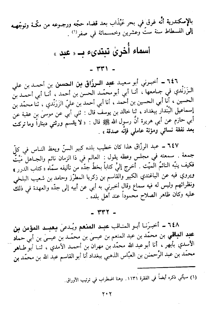 647 - عَبْدُ الرَّزَّاقِ هَذَا كَانَ خَطِيبَ بَلَدِهِ كَبِيرَ السِّنِّ وَيَعِظُ النَّاسَ فِي كُلِّ جُمُعَةٍ
