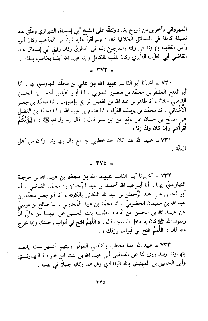 731 - عُبَيْدُ اللَّهِ هَذَا كَانَ أَحَدَ خَطِيبِي جَامِعِ دَالَ بِنُهَاوَنْدَ وَكَانَ مِنْ أَهْلِ الْعِفَّةِ