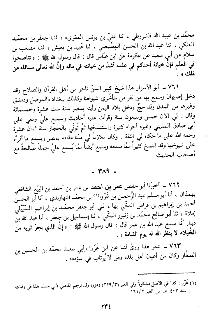 763 - عُمَرُ هَذَا رَوَى لَنَا عَنِ ابْنِ غَزَّوَا وَأَبِي سَعْدٍ مُحَمَّدِ بْنِ الْحُسَيْنِ بْنِ الصَّفَّارِ وَكَانَ مِنْ أَعْيَانِ أَهْلِ بَلَدِهِ وَمَنْ لَا يُرْتَابُ فِي سُؤْدُدِهِ