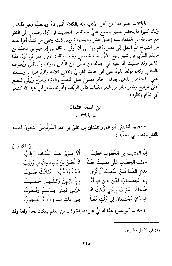 801 - أَبُو عَمْرٍو هَذَا لَهُ فِيَّ غَيْرُ قَصِيدَةٍ وَكَانَ مِنَ الْعِلْمِ بِمَكَانٍ نَحْوًا وَلُغَةً وَقَدْ