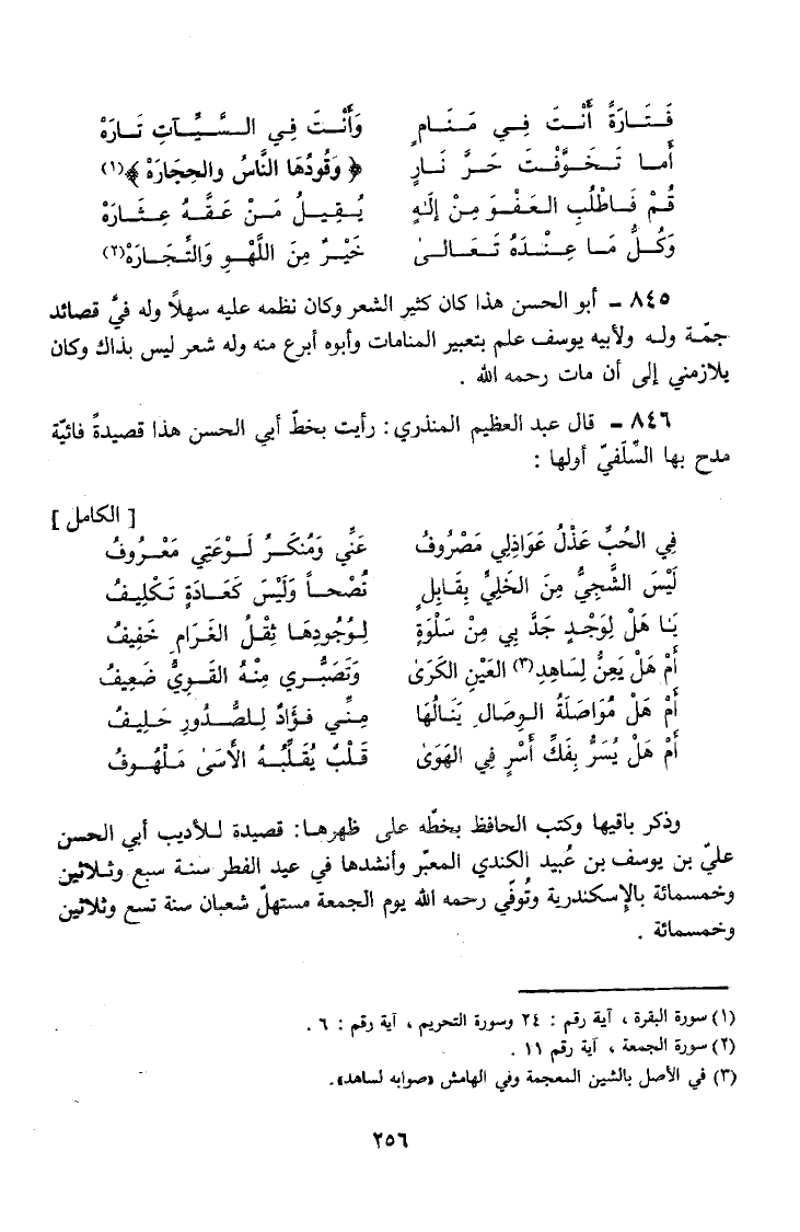 846 - قَالَ عَبْدُ الْعَظِيمِ الْمُنْذِرِيُّ رَأَيْتُ بِخَطِّ أَبِي الْحَسَنِ هَذَا قَصِيدَةً فَائِيَّةً مَدَحَ بِهَا السِّلَفِيَّ أَوَّلُهَا