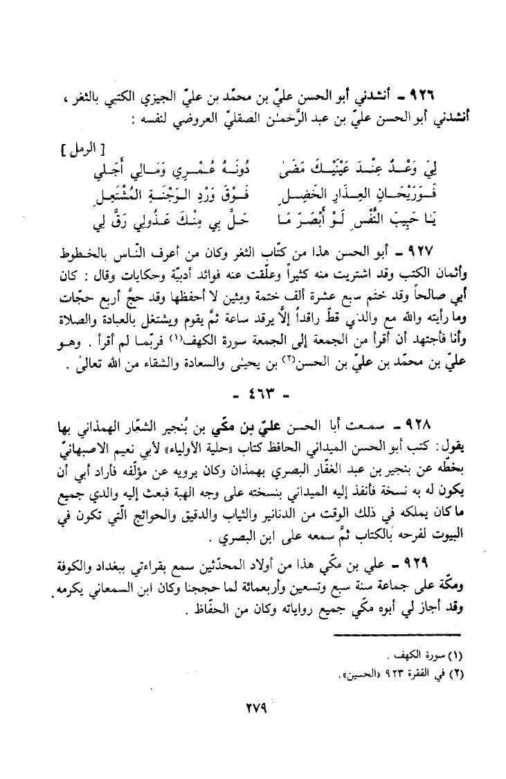 926 - أَنْشَدَنِي أَبُو الْحَسَنِ عَلِيُّ بْنُ مُحَمَّدِ بْنِ عَلِيٍّ الْجِيزِيُّ الْكُتُبِيُّ بِالثَّغْرِ أَنْشَدَنِي أَبُو الْحَسَنِ عَلِيُّ بْنُ عَبْدِ الرَّحْمَنِ الصَّقَلِّيُّ الْعَرُوضِيُّ لِنَفْسِهِ