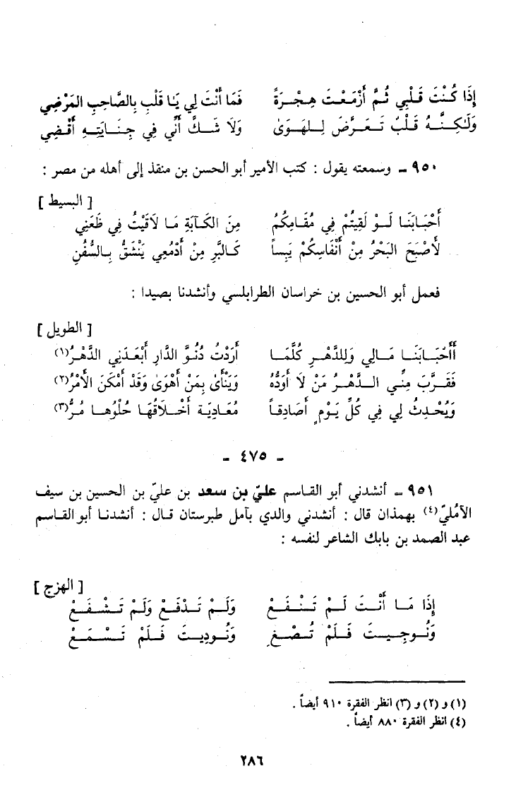 950 - وَسَمِعْتُهُ يَقُولُ كَتَبَ الْأَمِيرُ أَبُو الْحَسَنِ بْنُ مُنْقِذٍ إِلَى أَهْلِهِ مِنْ مِصْرَ