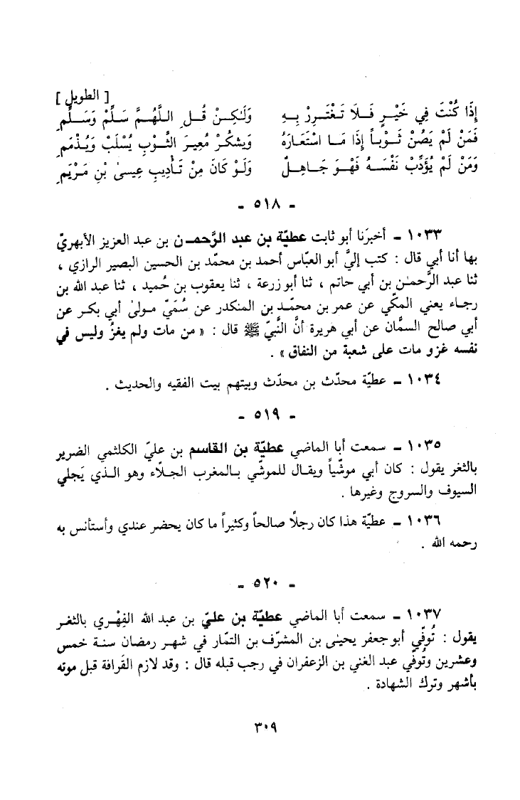 1034 - عَطِيَّةُ مُحَدِّثِ بْنِ مُحَدِّثٍ وَبَيْتُهُمْ بَيْتٌ الْفَقِيه وَالْحَدِيثِ.