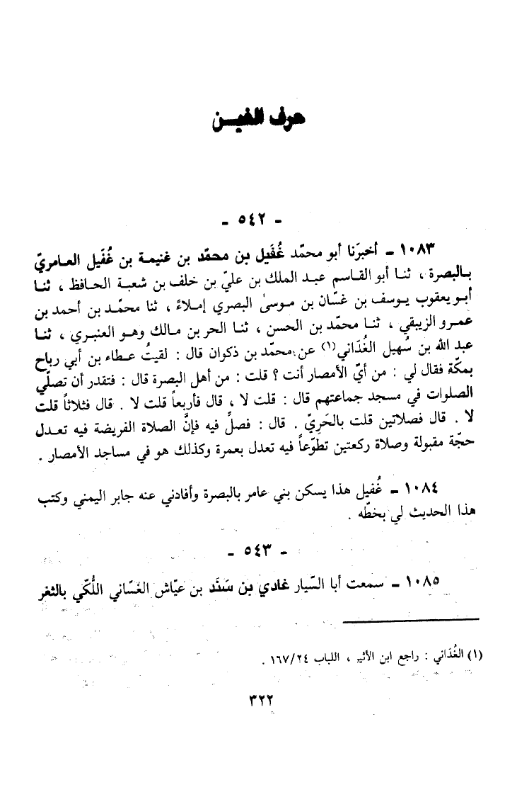 1084 - غُفَيْلٌ هَذَا يَسْكُنُ بَنِي عَامِرٍ بِالْبَصْرَةِ وَأَفَادَنِي عَنْهُ جَابِرٌ الْيَمَنِيُّ وَكَتَبَ هَذَا الْحَدِيثَ لِي بِخَطِّهِ.