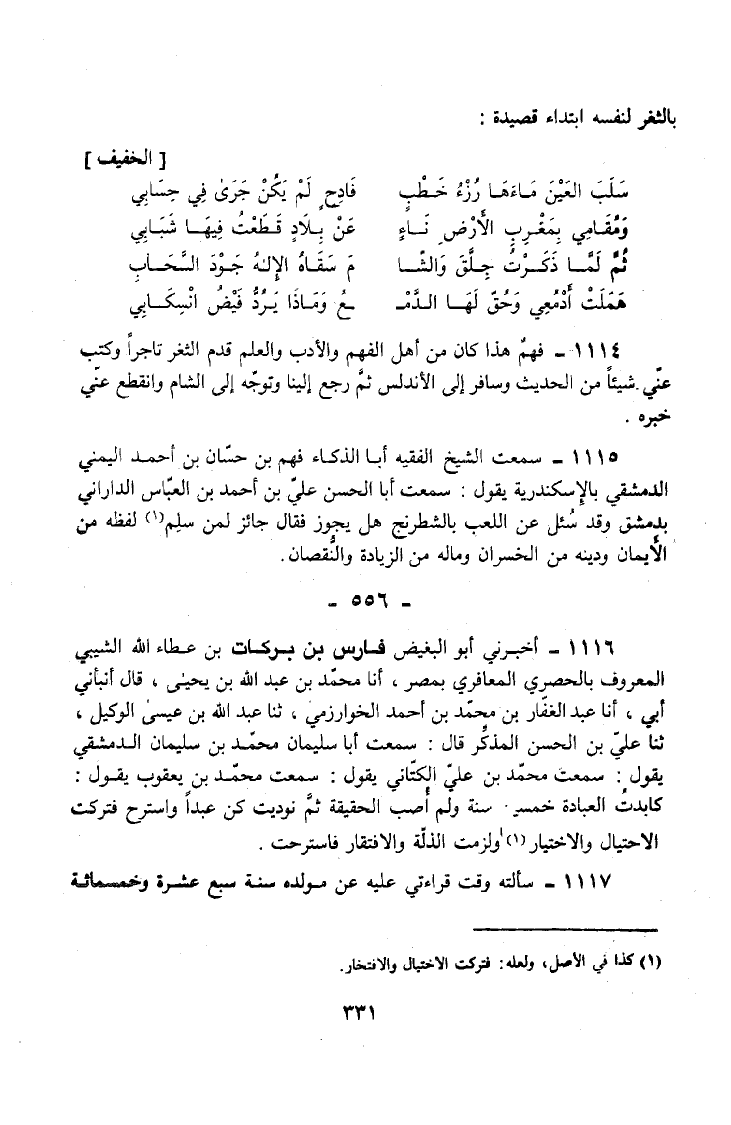1117 - سَأَلْتُهُ وَقْتَ قِرَاءَتِي عَلَيْهِ عَنْ مولده سنة سبع عشرَة وَخَمْسمِائة
