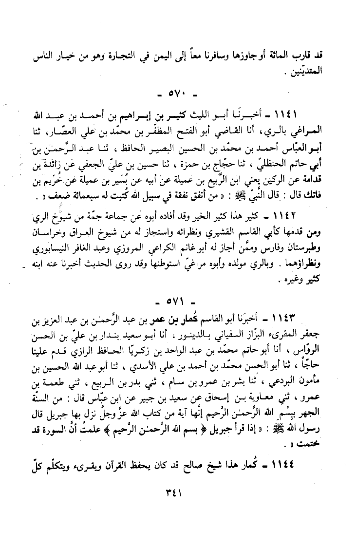 1142 - كَثِيرٌ هَذَا كَثِيرُ الْخَيْرِ وَقَدْ أَفَادَهُ أَبُوهُ عَنْ جَمَاعَةٍ جَمَّةٍ مِنْ شُيُوخِ الرَّيِّ وَمَنْ قَدِمَهَا كَأَبِي الْقَاسِمِ الْقُشَيْرِيِّ وَنُظَرَائِهِ وَاسْتَجَازَ لَهُ مِنْ شُيُوخِ الْعِرَاقِ وَخُرَاسَانَ وَطَبَرِسْتَانَ وَفَارِسَ وَمِمَّنْ أَجَازَ لَهُ أَبُو غَانِمٍ الْكُرَاعِيُّ الْمَرْوَزِيُّ وَعَبْدُ الْغَافِرِ النَّيْسَابُورِيُّ وَنُظَرَاؤُهُمَا