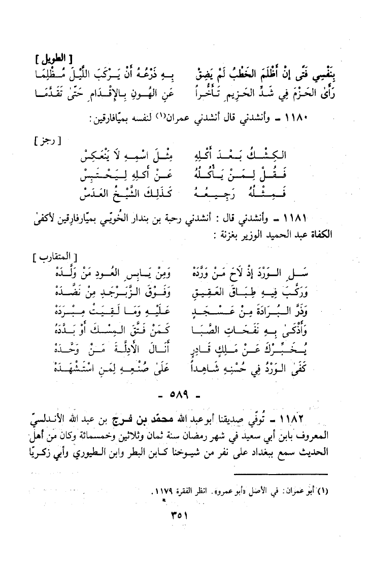 1180 - وَأَنْشَدَنِي قَالَ أَنْشَدَنِي عِمْرَانُ لِنَفْسِهِ بِمَيَّافَارِقِينَ