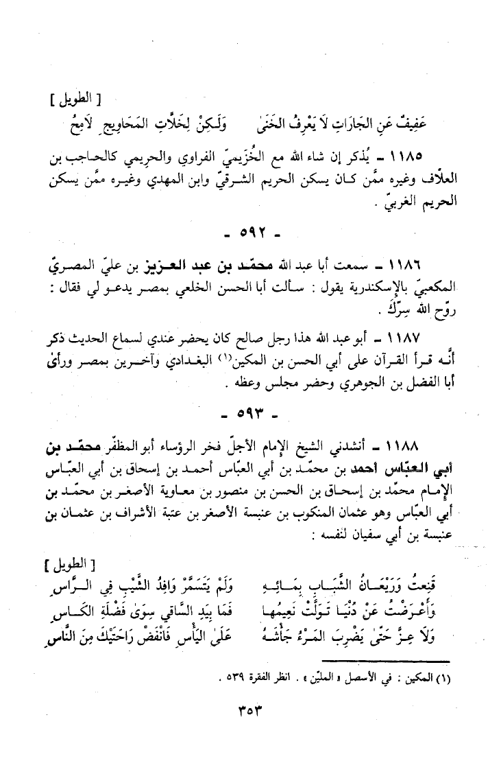1185 - يُذْكَرُ إِنْ شَاءَ اللَّهُ مَعَ الْخُزَيْمِيِّ الْفَرَاوِيِّ وَالْحَرِيمِيِّ كَالْحَاجِبِ بْنِ الْعَلَّافِ وَغَيْرِهِ مِمَّنْ كَانَ يَسْكُنُ الْحَرِيمَ الشَّرْقِيَّ وَابْنِ الْمَهْدِيِّ وَغَيْرِهِ مِمَّنْ يَسْكُنُ الْحَرِيمَ الْغَرْبِيَّ