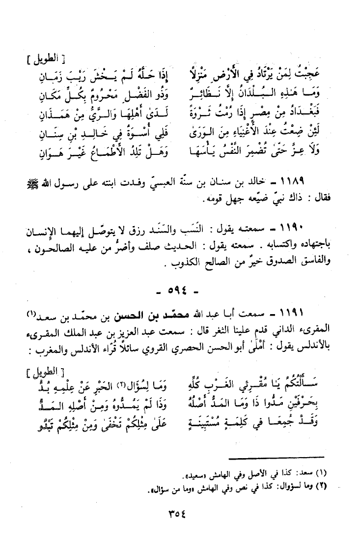 1190 - سَمِعْتُهُ يَقُولُ النَّسَبُ وَالسَّنَدُ رزق لَا يتَوَصَّل إِلَيْهِمَا الْإِنْسَانُ بِاجْتِهَادِهِ وَاكْتِسَابِهِ