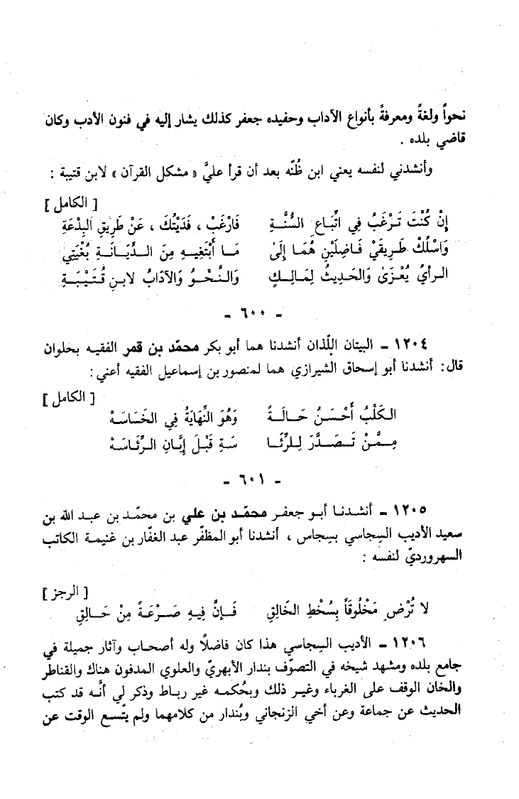 1205 - أَنْشَدَنَا أَبُو جَعْفَرٍ مُحَمَّدُ بْنُ عَلِيُّ بْنُ مُحَمَّدِ بْنِ عَبْدِ الله بن سعيد الْأَدِيب السِّجَاسِيُّ بِسِجَاسَ أَنْشَدَنَا أَبُو الْمُظَفَّرِ عَبْدُ الْغَفَّارِ بْنُ غُنَيْمَةَ الْكَاتِبُ السُّهْرَوْرَدِيُّ لِنَفْسِهِ