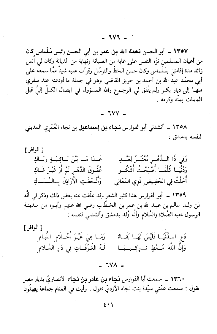 1358 - أَنْشَدَنِي أَبُو الْفَوَارِسِ نَجَاءُ بْنُ إِسْمَاعِيلَ بْنِ نَجَاءٍ الْعُمَرِيُّ الْمَدِينِيُّ لِنَفْسِهِ بِدِمَشْقَ