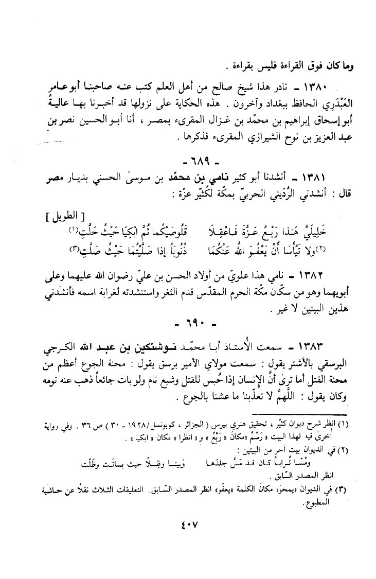 1381 - أَنْشَدَنَا أَبُو كَثِيرٍ نَامِي بْنُ مُحَمَّدِ بْنِ مُوسَى الْحَسَنِيُّ بِدِيَارِ مِصْرَ قَالَ أَنْشَدَنِي الرُّدَيْنِيُّ الْحَرْبِيُّ بِمَكَّةَ لِكُثَيِّرِ عَزَّةَ