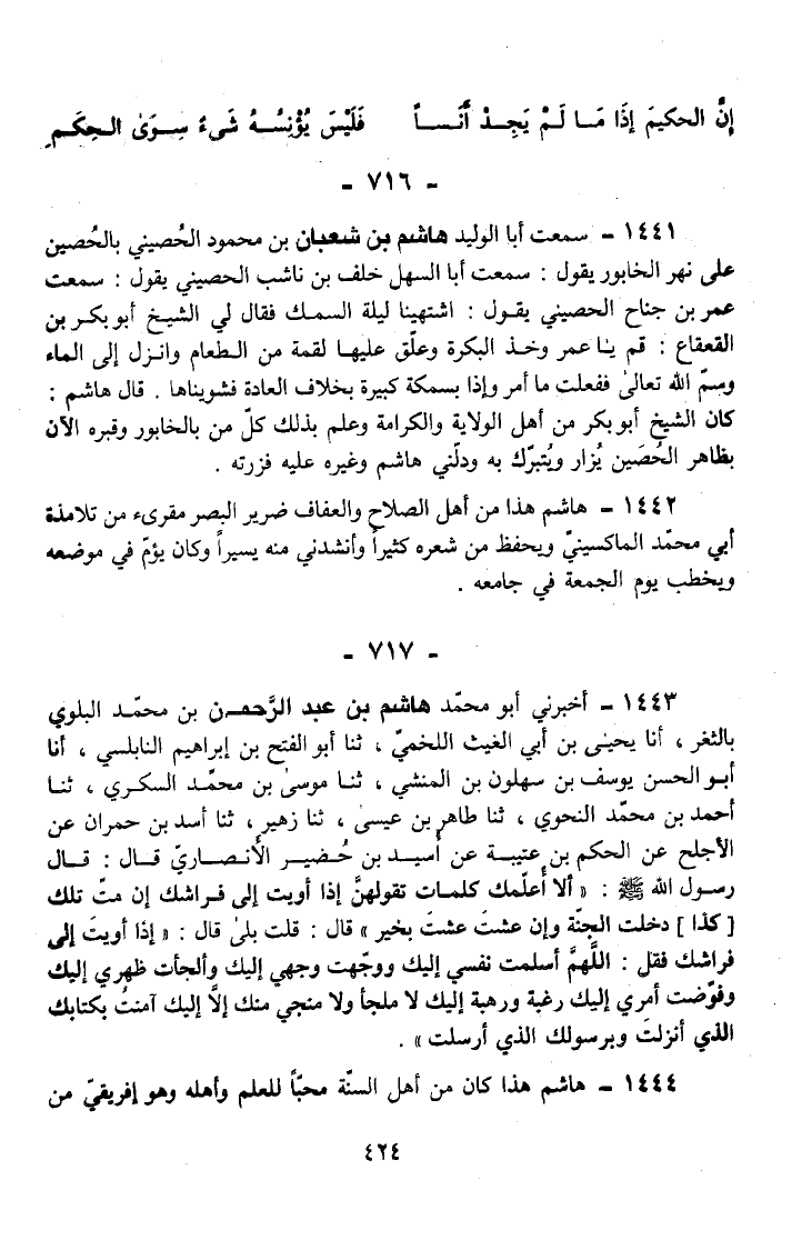 1444 - هَاشِمٌ هَذَا كَانَ مِنْ أَهْلِ السُّنَّةِ مُحِبًّا لِلْعِلْمِ وَأَهْلِهِ وَهُوَ إِفْرِيقِيٌّ مِنْ