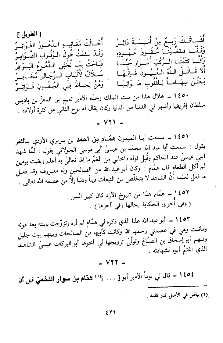 1454 - قَالَ لِي يَوْمًا الْأَمِيرُ أَبُو هَمَّامُ بْنُ سَوَّارٍ اللَّخْمِيُّ قَبْلَ أَنْ