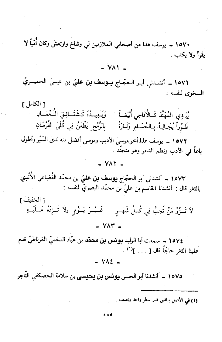 1571 - أَنْشَدَنِي أَبُو الْحَجَّاجِ يُوسُفُ بْنُ عَلِيِّ بْنِ عِيسَى الْحِمْيَرِيُّ السَّخَوِيُّ لِنَفْسِهِ