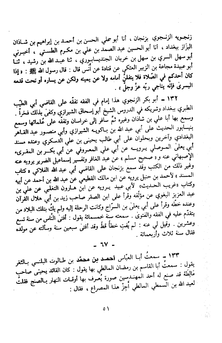 132 - أَبُو بَكْرٍ الزَّنْجَوِيُّ هَذَا إِمَامٌ فِي الْفِقْهِ تَفَقَّهَ عَلَى الْقَاضِي أَبِي الطَّيِّبِ الطَّبَرِيِّ بِبَغْدَادَ وَشَرِيكُهُ فِي الدُّرُوسِ الشَّيْخُ أَبُو إِسْحَاقَ الشِّيرَازِيُّ وَكَفَى بِذَلِكَ فَخْرًا