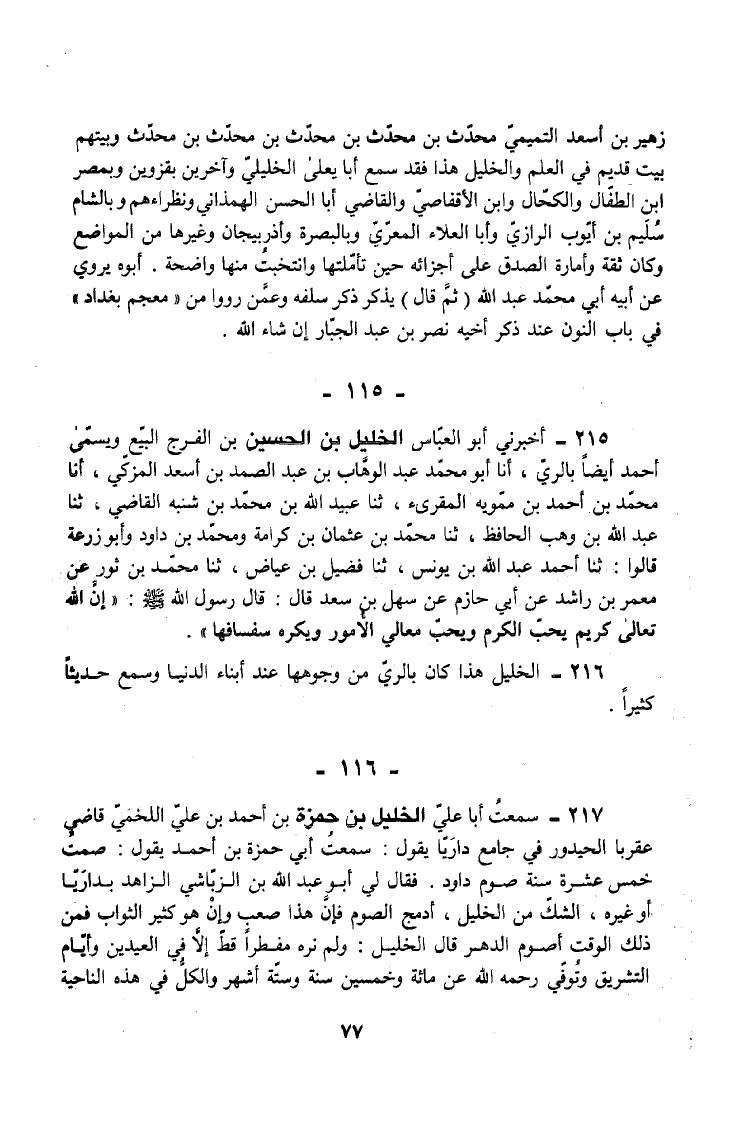 216 - الْخَلِيلُ هَذَا كَانَ بِالرَّيِّ مِنْ وُجُوهِهَا عِنْدَ أَبْنَاءِ الدُّنْيَا وَسَمِعَ حَدِيثًا كَثِيرًا