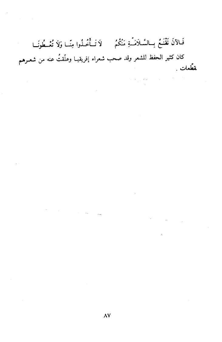 كَانَ كَثِيرَ الْحِفْظِ لِلشِّعْرِ وَقَدْ صَحِبَ شُعَرَاءَ إِفْرِيقِيَا وَعَلَّقْتُ عَنْهُ مِنْ شِعْرِهِمْ مُقَطَّعَاتٍ